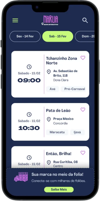 O NaRua é um aplicativo informativo que reúne e organiza dados sobre eventos urbanos, blocos, locais e